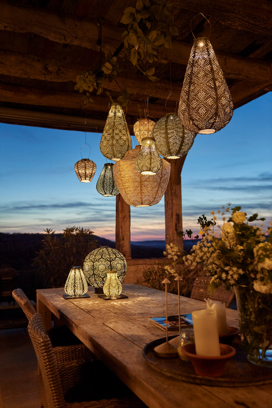 Lumiz Lantern Long Oval 20cm Gold Paisley