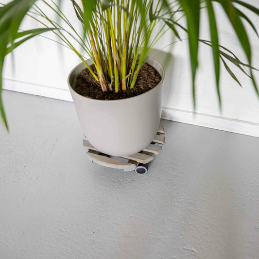 Plant Trolley Wooden Round Grey