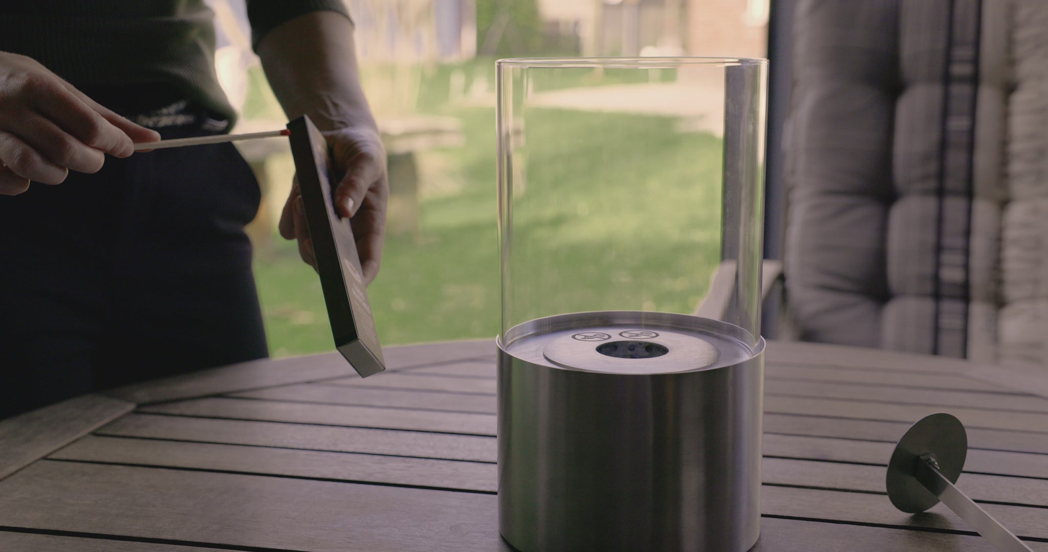 This beautiful square fireplace can be used safely both indoors and outdoors.