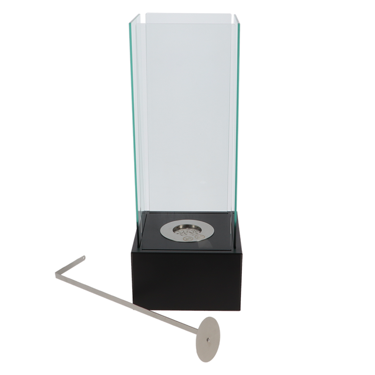 With safety glass on the sides, it provides maximum visibility of the flames. It has a burn time of up to 2.5 hours per filling and requires no electricity.