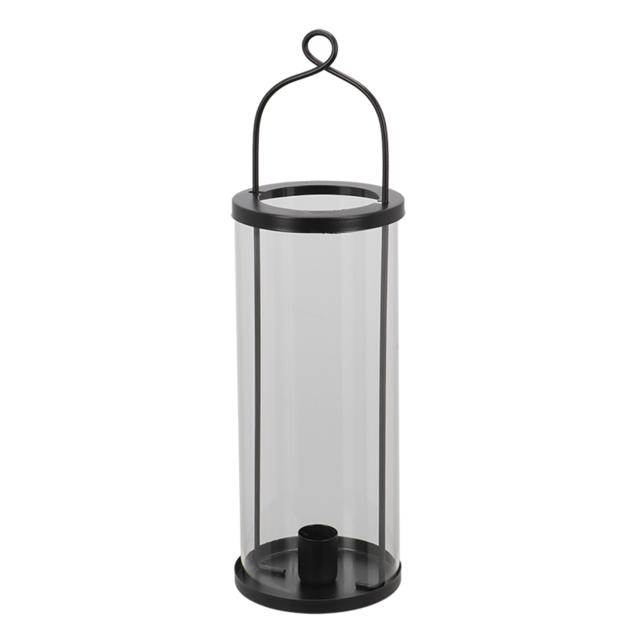 This transparent wind light with candle holder has beautiful black details and a sleek look. The handy ring at the top makes it easy to hang the wind light, but even on a stool, table or on the ground, this wind light creates atmosphere in the garden. The glass and top can be slid upwards, making it easy to place a candle or tea light inside and light it.