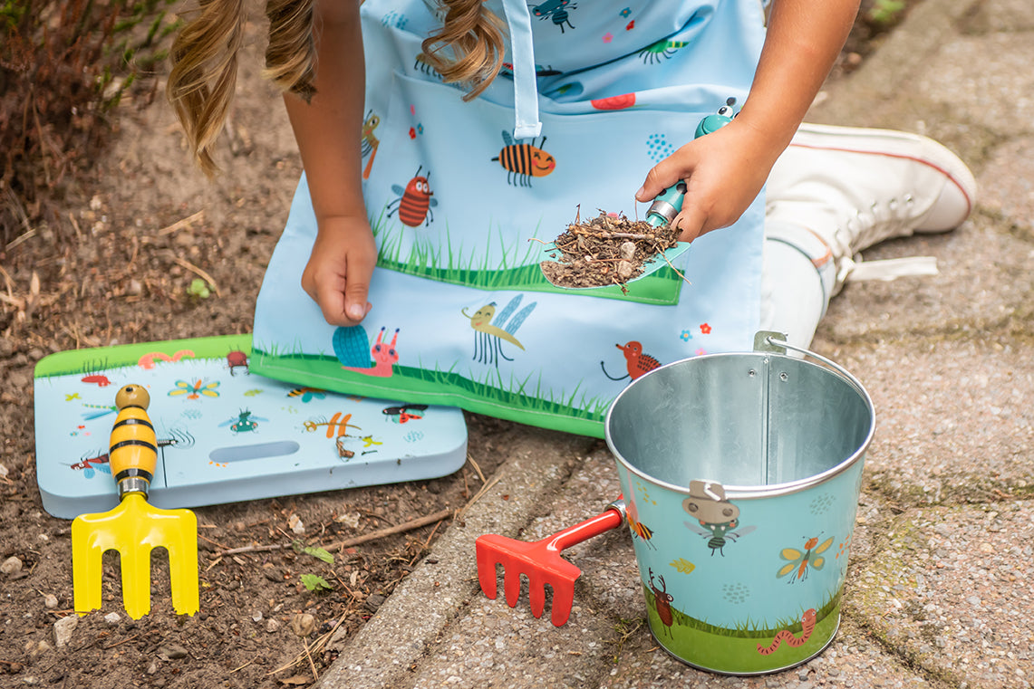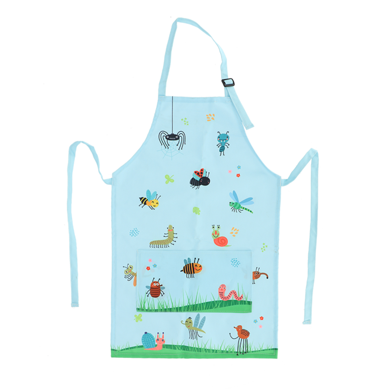 This cheerful children's apron depicting insects is a must for gardening. The apron has a spacious pocket for storing things and an adjustable neck strap.