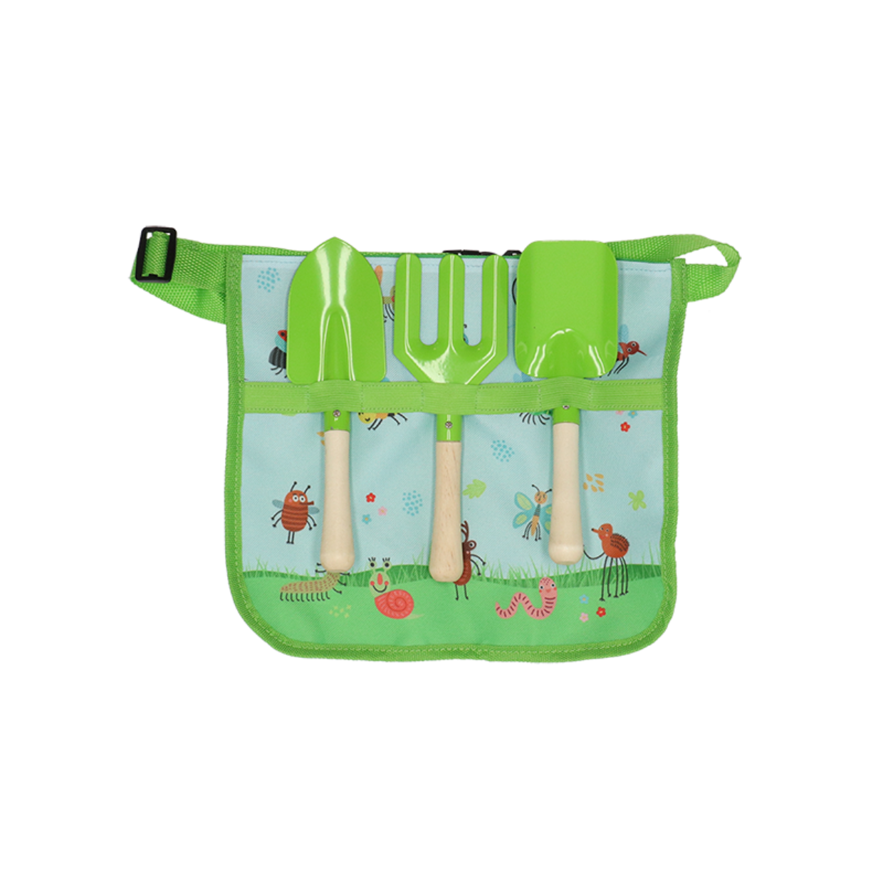 This insect tool belt will give kids hours of fun in the garden! Children will become real gardeners with their own garden tools close at hand attached to the handy belt. The set has a cute insect print and the adjustable belt has storage space for hand tools.