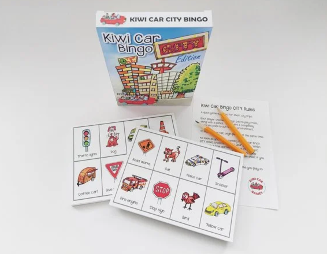 The City Edition of Kiwi Car Bingo is a variant on our classic Car Bingo, and is a travel game that is designed to to be played over shorter journeys in urban areas, rather than when driving on the open road.