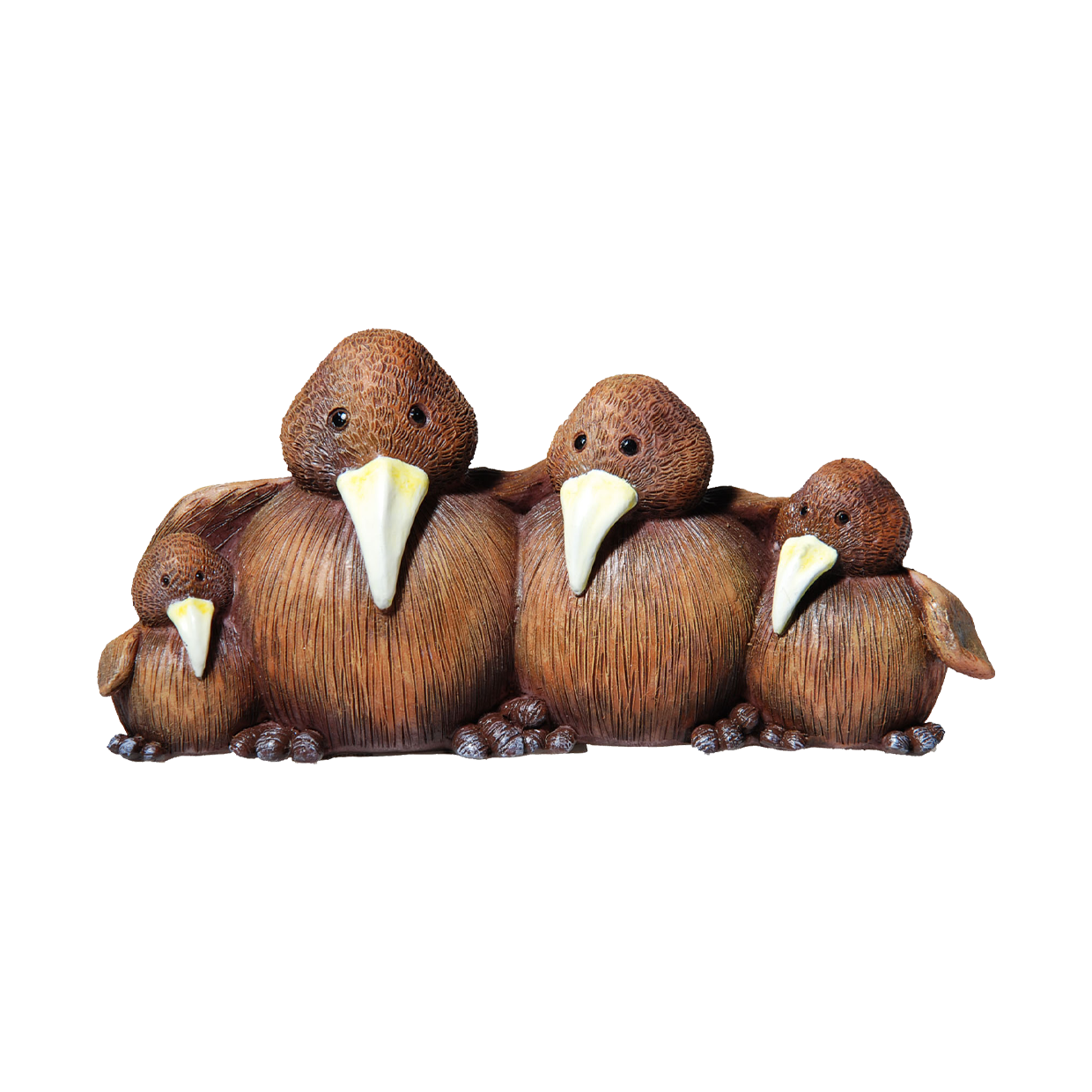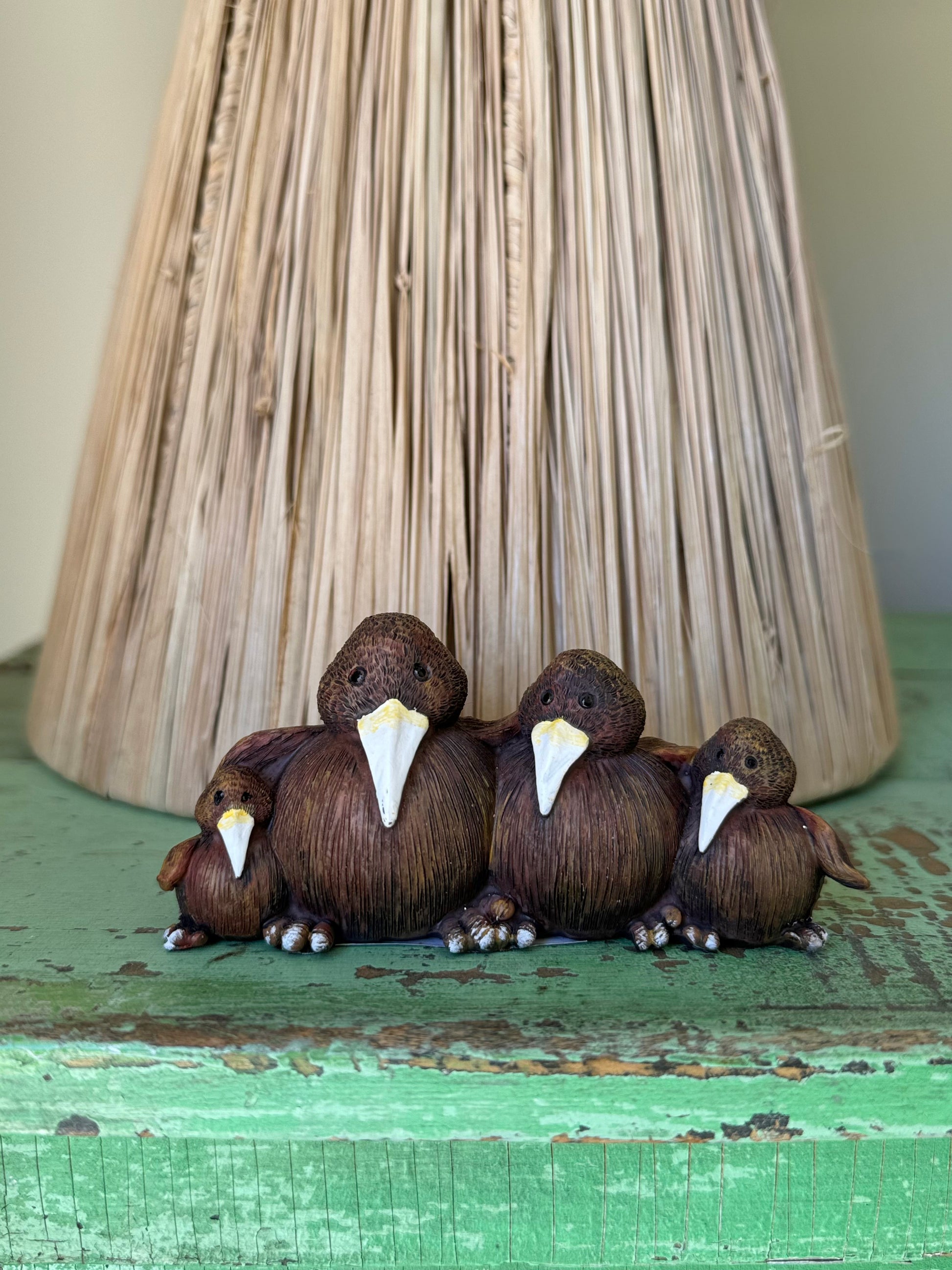 A Kiwi family sitting decoration to place on a windowsill, dresser or counter.
