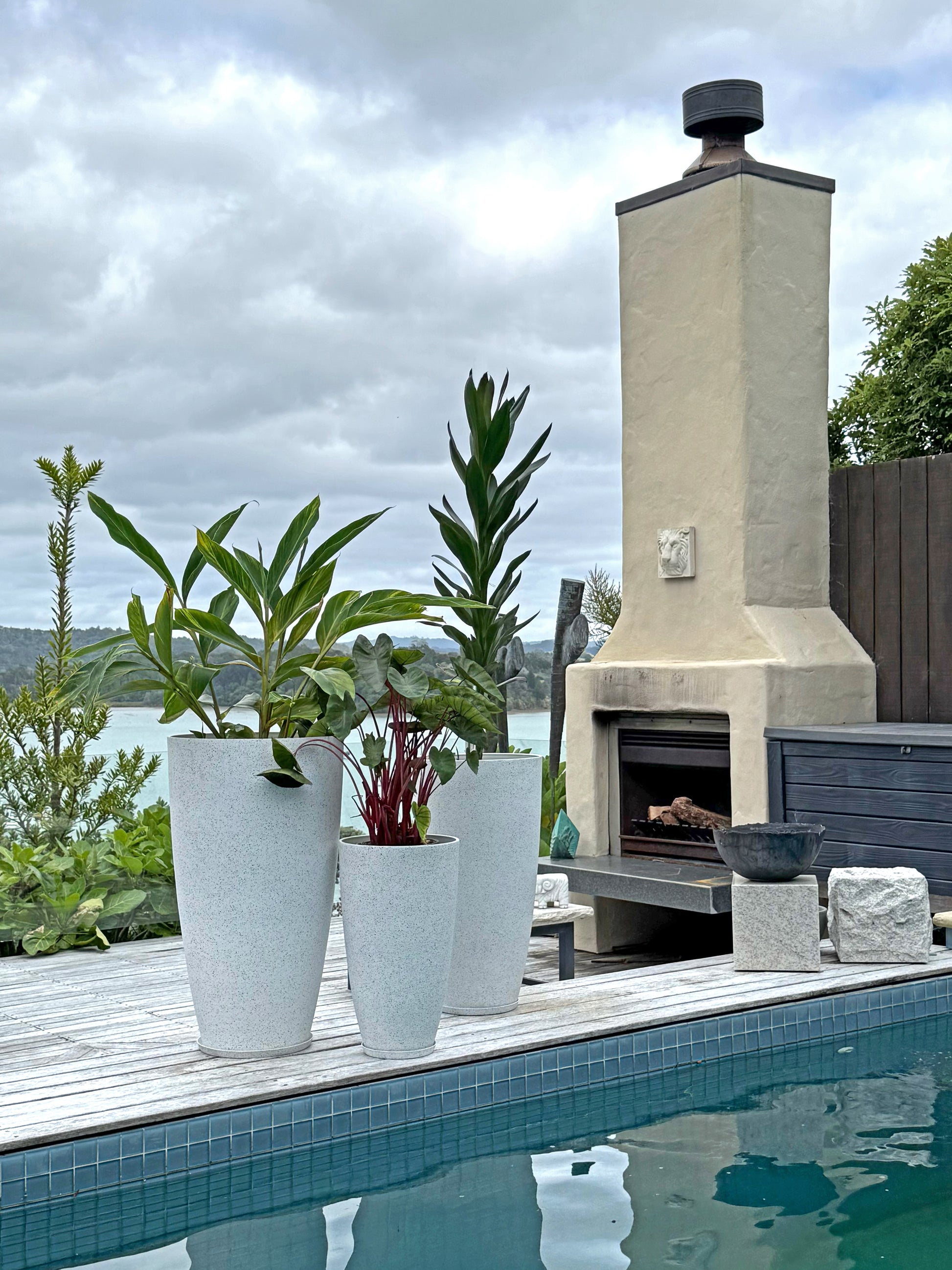 Artstone planters are made to look like concrete but are made from 50% of natural stone and 50% of recycled plastic, making them strong but lightweight for easy moving.