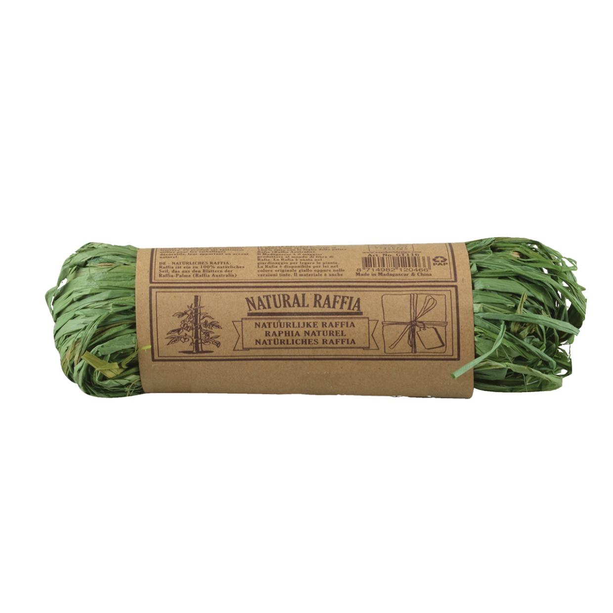 Raffia is a 100% natural rope made from the leaves of the raffia palm (Raffia Australis). Madagascar is one of the world's largest producers of raffia fibre. This raffia is great for tying plants together, and can also be used to add a rustic feel to packaging.