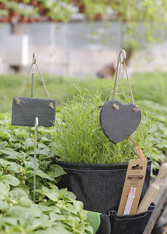 These slate plant labels are easy to write on and are ideal for use in flower beds, flower pots and herb boxes. Wax Pencils available GT134.