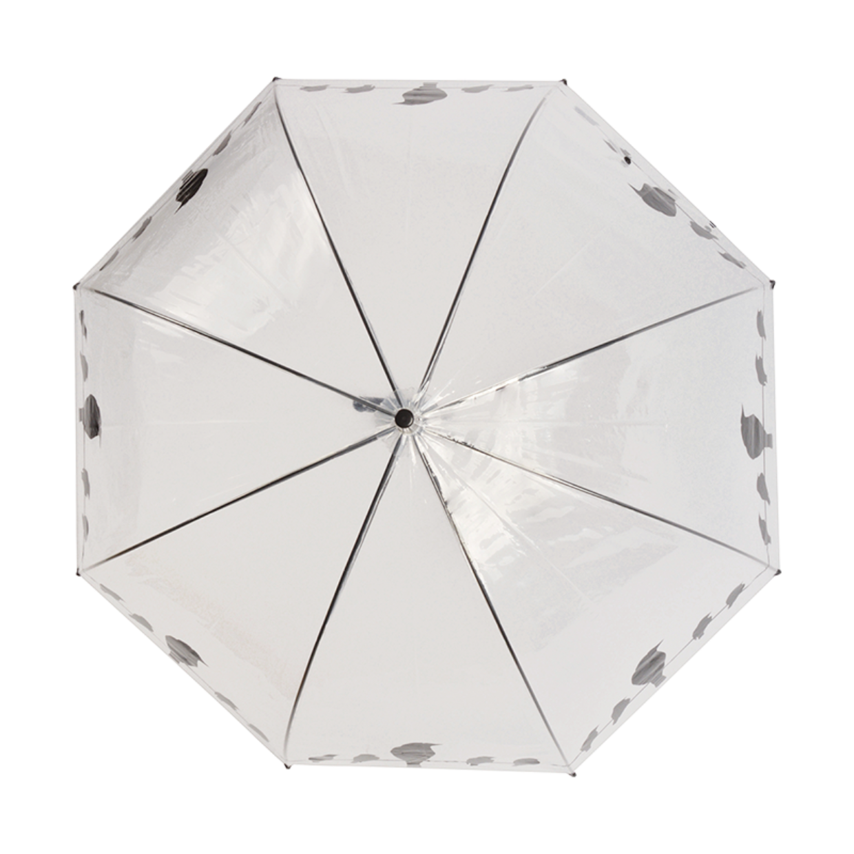 This transparent printed umbrella makes going out for a walk in the rain a joy. The print depicts the silhouettes of birds on a wire. The transparent material mean you can still be aware of your surroundings while walking.